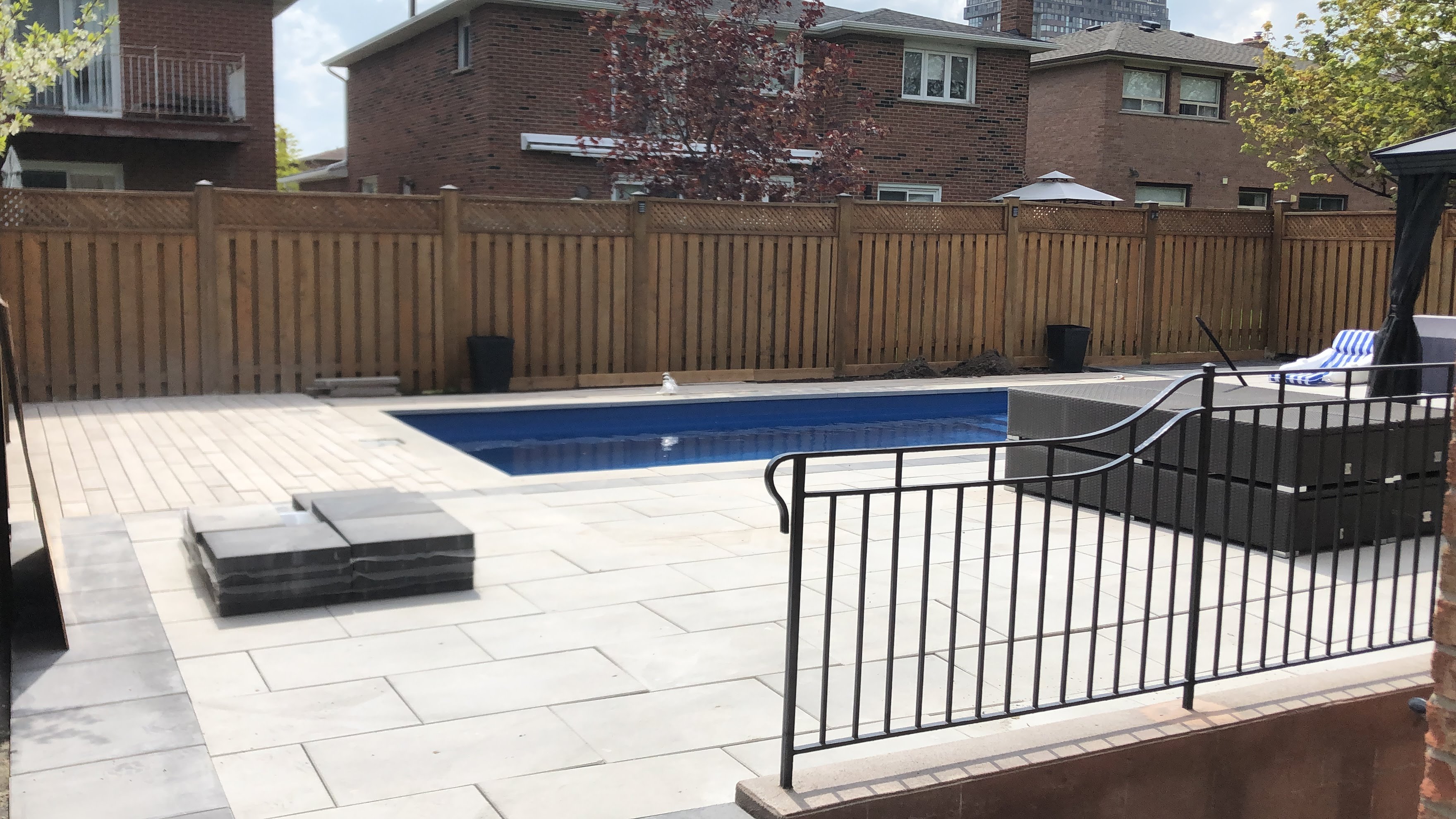 At Complete Scape our service is unmatched with fast and reliable support. We are fully insured & bonded. We have vast experience with interlock, flagstone, fire pits & patios, walkway & driveway pickup and relay, retaining walls, capped porch, garden beds (plantation & sod). We also do paving, pools, concrete, porches, fencing and decks. Feel free to call and ask about any special requests. We have over 25+ years of experience and we are proudly family owned.